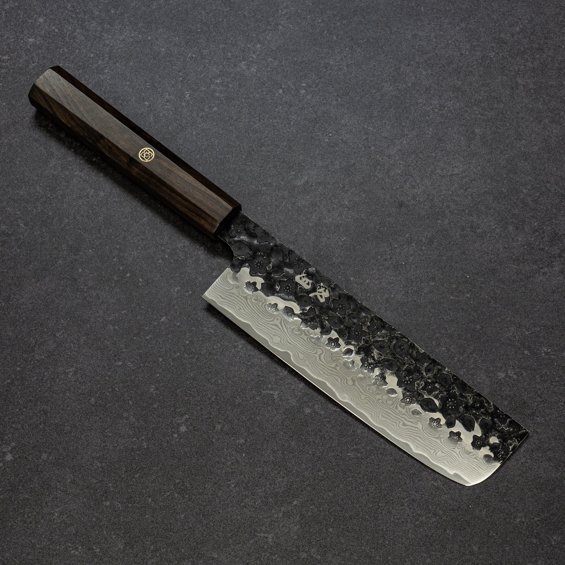 Black Cherry Blossoms Hammered Finish 67lays Damascus Nakiri 170mm